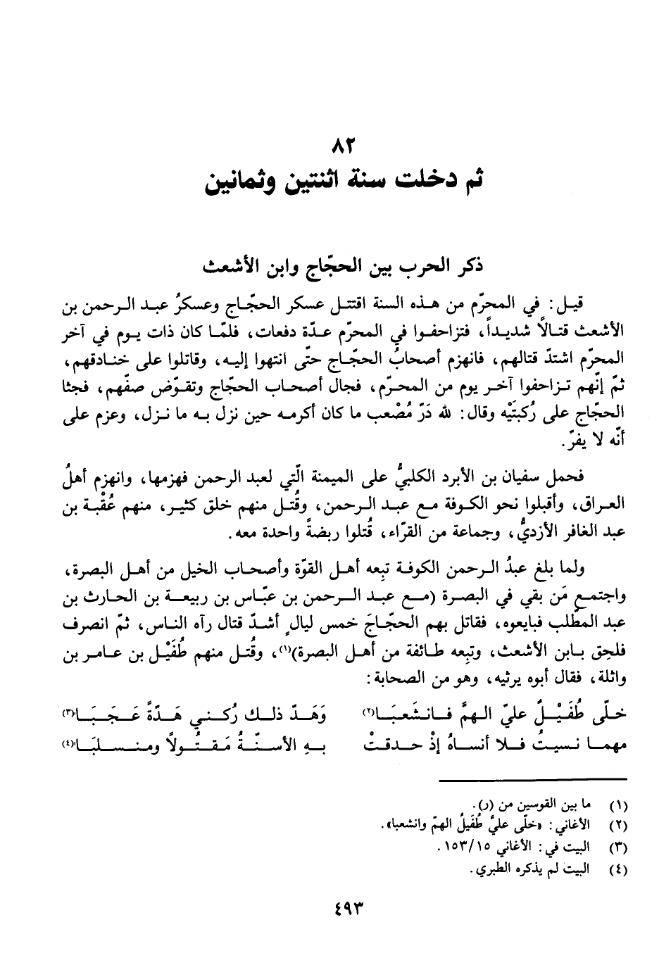 ذِكْرُ الْحَرْبِ بَيْنَ الْحَجَّاجِ وَابْنِ الْأَشْعَثِ