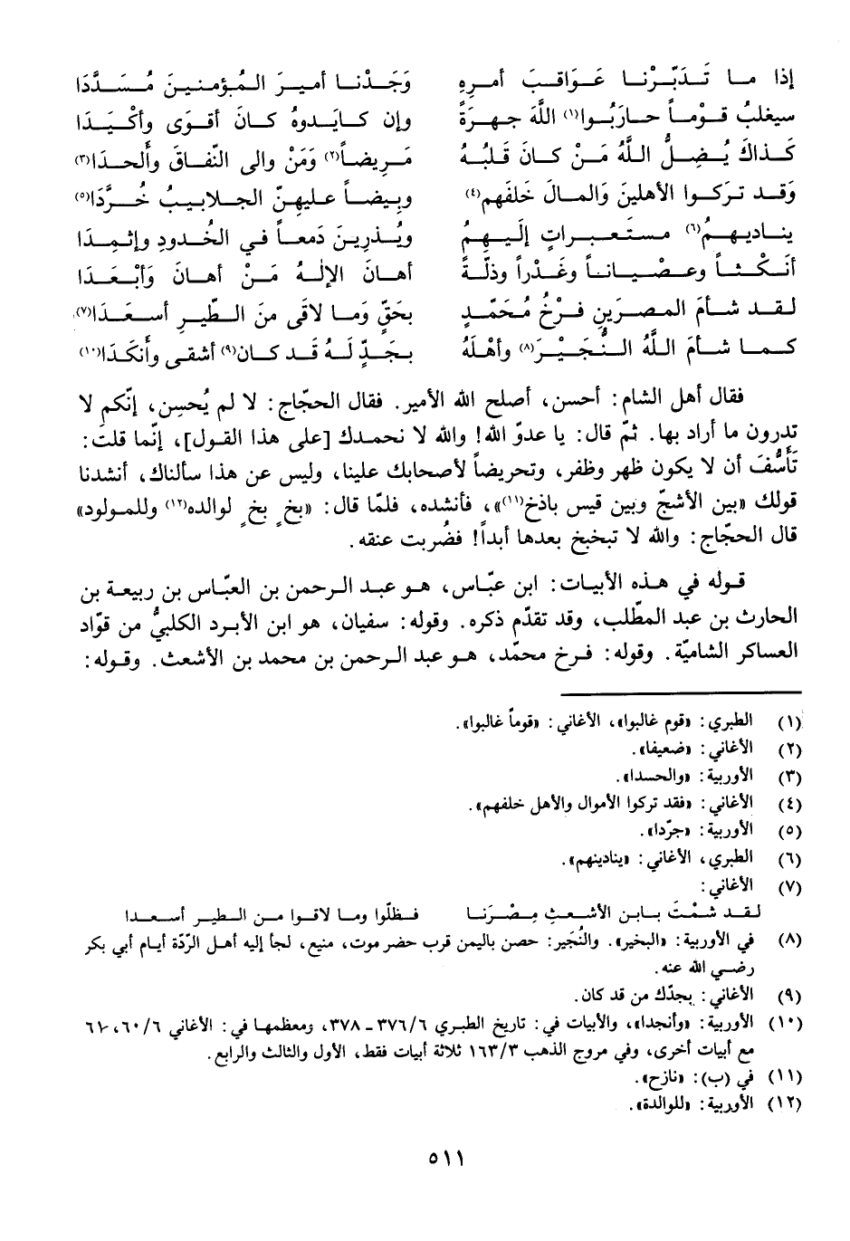 فَقَالَ. أَهْلُ الشَّامِ: أَحْسَنَ، أَصْلَحَ اللَّهُ الْأَمِيرَ. فَقَالَ الْحَجَّاجُ: لَا، لَمْ يُحْسِنْ، إِنَّكُمْ لَا تَدْرُونَ مَا أَرَادَ بِهَا. ثُمَّ قَالَ: يَا عَدُوَّ اللَّهِ! وَاللَّهِ لَا نَحْمِدُكَ [عَلَى هَذَا الْقَوْلِ] ، إِنَّمَا قُلْتَ تَأَسُّفَ أَنْ لَا يَكُونَ ظَهَرَ وَظَفِرَ، وَتَحْرِيضًا لِأَصْحَابِكَ عَلَيْنَا، وَلَيْسَ عَنْ هَذَا سَأَلْنَاكَ، أَنْشِدْنَا قَوْلَكَ بَيْنَ الْأَشَجِّ وَبَيْنَ قَيْسِ بَاذِخٍ، فَأَنْشَدَهُ، فَلَمَّا قَالَ: بَخٍ بَخٍ لِوَالِدِهِ وَلِلْمَوْلُودِ قَالَ الْحَجَّاجُ: وَاللَّهِ لَا تُبَخْبِخُ بَعْدَهَا أَبَدًا! فَضُرِبَتْ عُنُقُهُ.