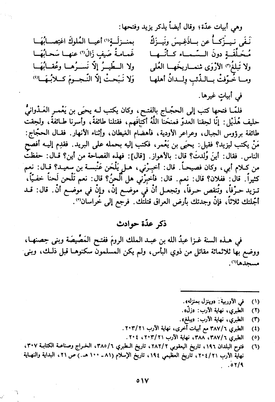 وَهِيَ أَبْيَاتٌ عِدَّةٌ، وَقَالَ أَيْضًا يَذْكُرُ يَزِيدَ وَفَتْحَهَا: