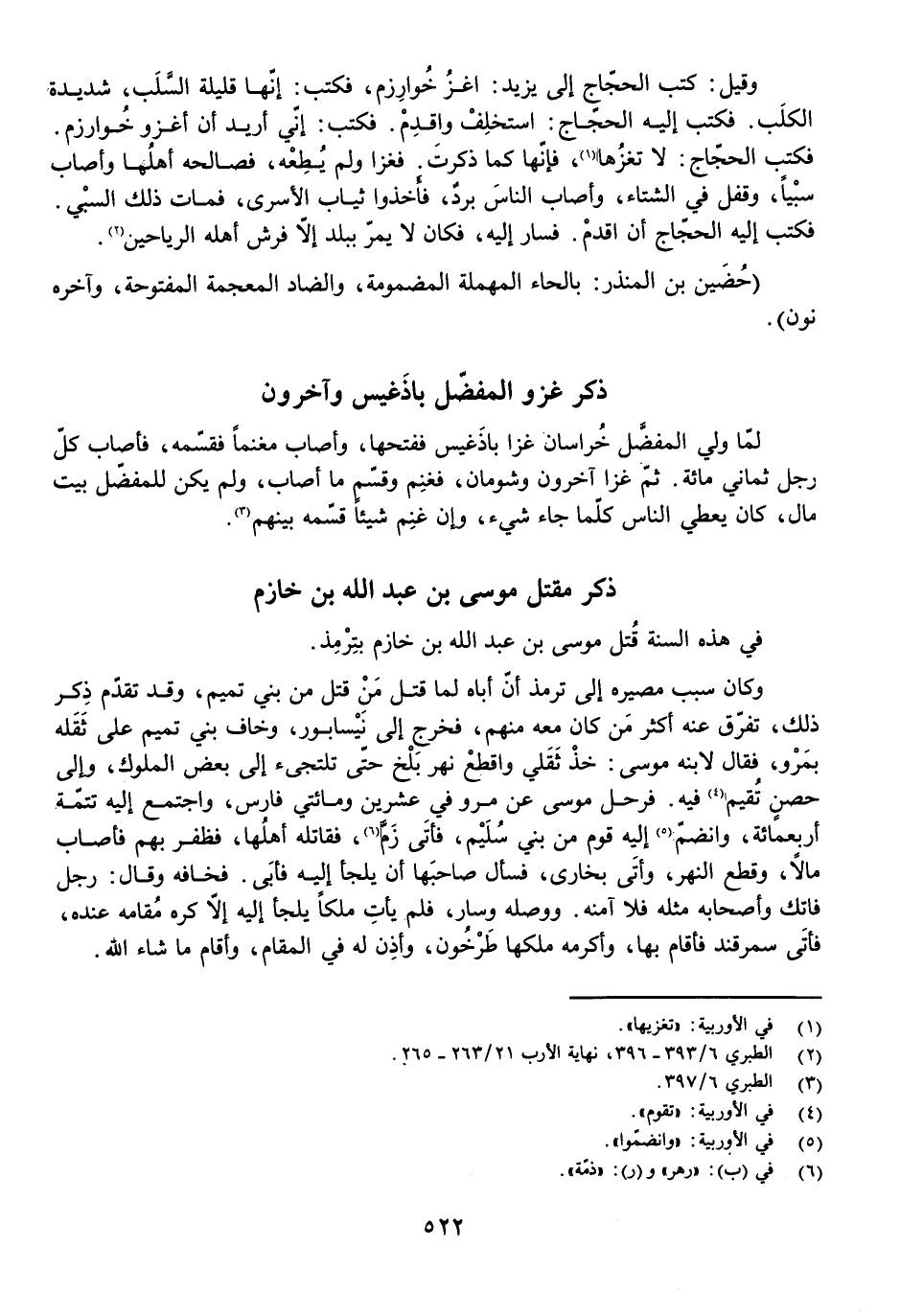 ذِكْرُ مَقْتَلِ مُوسَى بْنِ عَبْدِ اللَّهِ بْنِ خَازِمٍ
