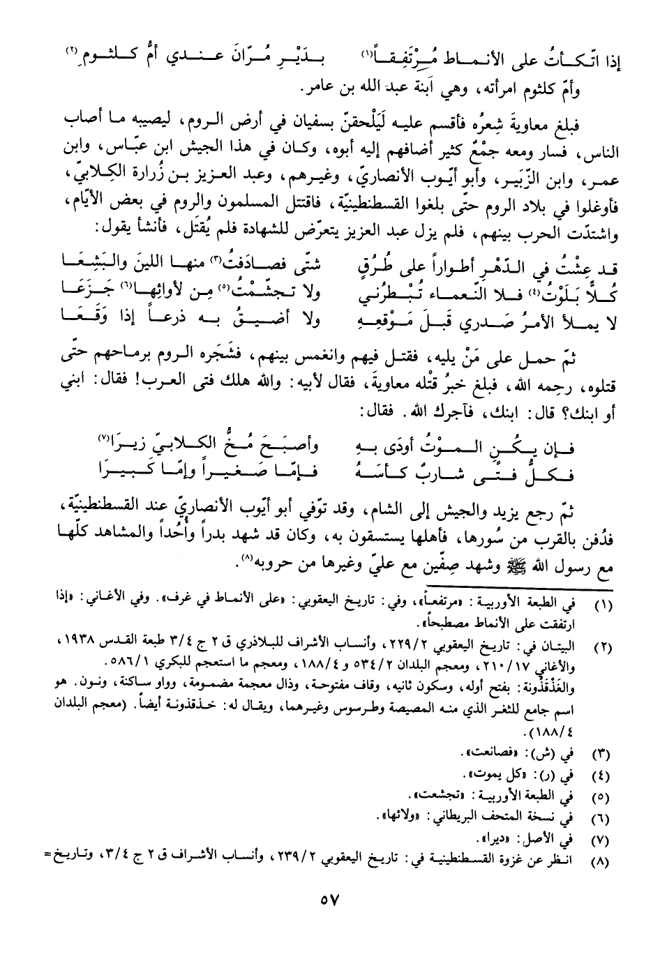 فَبَلَغَ مُعَاوِيَةَ شِعْرُهُ فَأَقْسَمَ عَلَيْهِ لَيَلْحَقَنَّ بِسُفْيَانَ إِلَى أَرْضِ الرُّومِ لِيُصِيبَهُ مَا أَصَابَ النَّاسَ، فَسَارَ وَمَعَهُ جَمْعٌ كَثِيرٌ أَضَافَهُمْ إِلَيْهِ أَبُوهُ، وَكَانَ فِي هَذَا الْجَيْشِ ابْنُ عَبَّاسٍ وَابْنُ عُمَرَ وَابْنُ الزُّبَيْرِ وَأَبُو أَيُّوبَ الْأَنْصَارِيُّ وَغَيْرُهُمْ وَعَبْدُ الْعَزِيزِ بْنُ زُرَارَةَ الْكِلَابِيُّ، فَأَوْغَلُوا فِي بِلَادِ الرُّومِ حَتَّى بَلَغُوا الْقُسْطَنْطِينِيَّةَ، فَاقْتَتَلَ الْمُسْلِمُونَ وَالرُّومُ فِي بَعْضِ الْأَيَّامِ وَاشْتَدَّتِ الْحَرْبُ بَيْنَهُمْ، فَلَمْ يَزَلْ عَبْدُ الْعَزِيزِ يَتَعَرَّضُ لِلشَّهَادَةِ فَلَمْ يُقْتَلْ، فَأَنْشَأَ يَقُولُ: