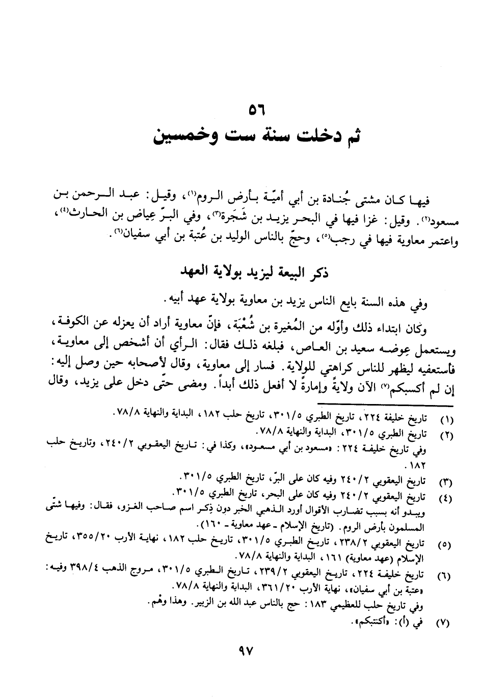 وَفِي هَذِهِ السَّنَةِ بَايَعَ النَّاسُ يَزِيدَ بْنَ مُعَاوِيَةَ بِوِلَايَةِ عَهْدِ أَبِيهِ.