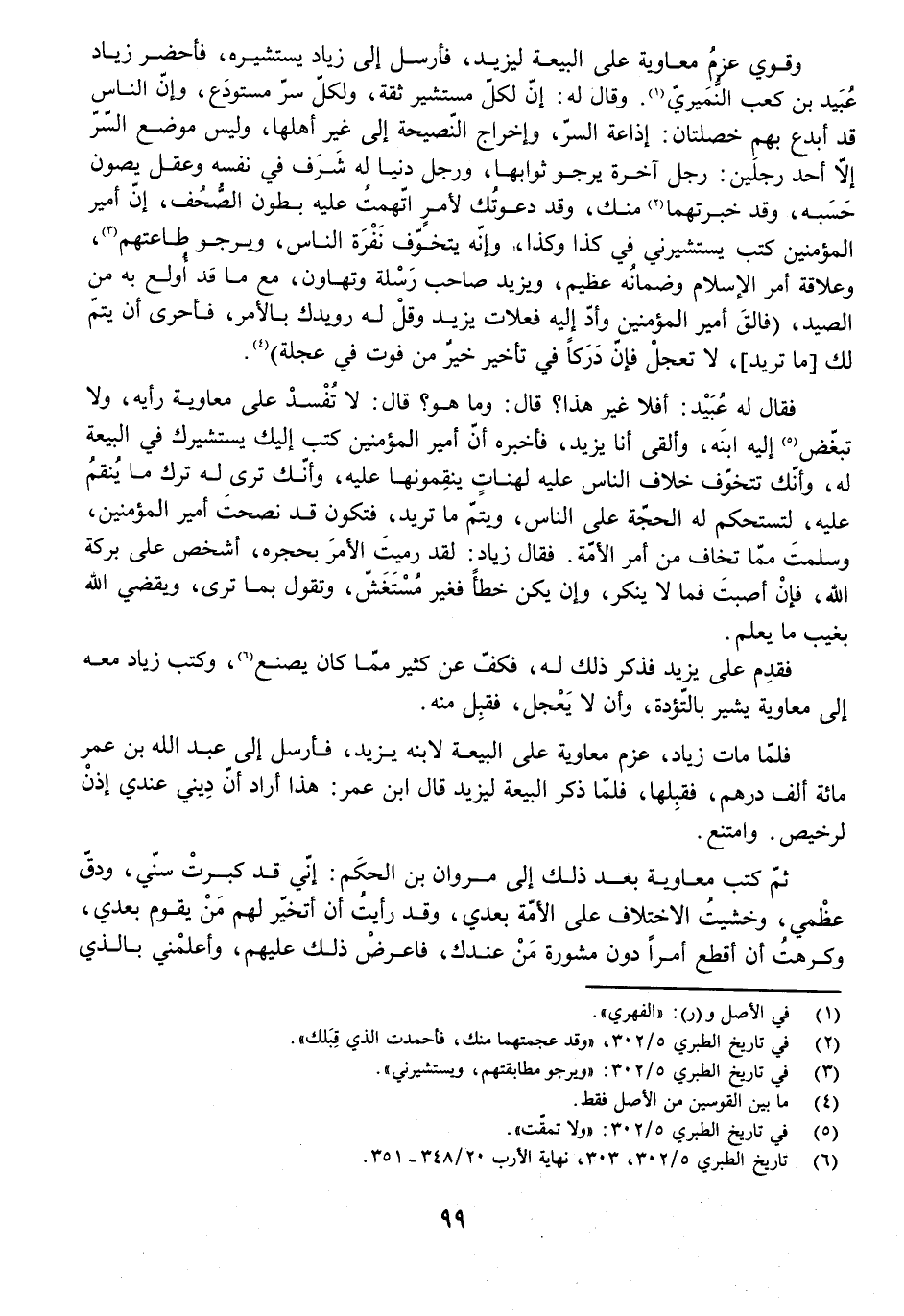 فَقَالَ لَهُ عُبَيْدٌ: أَفَلَا غَيْرُ هَذَا؟ قَالَ: وَمَا هُوَ؟ قَالَ: لَا تُفْسِدْ عَلَى مُعَاوِيَةَ رَأْيَهُ، وَلَا تُبَغِّضْ إِلَيْهِ ابْنَهُ وَأَلْقَى أَنَا يَزِيدَ فَأُخْبِرُهُ أَنَّ أَمِيرَ الْمُؤْمِنِينَ كَتَبَ إِلَيْكَ يَسْتَشِيرُكَ فِي الْبَيْعَةِ لَهُ، وَأَنَّكَ تَتَخَوَّفُ خِلَافَ النَّاسِ عَلَيْهِ لِهَنَاتٍ يَنْقِمُونَهَا عَلَيْهِ، وَأَنَّكَ تَرَى لَهُ تَرْكَ مَا يُنْقَمُ عَلَيْهِ لِتَسْتَحْكِمَ لَهُ الْحُجَّةُ عَلَى النَّاسِ وَيَتِمَّ مَا تُرِيدُ، فَتَكُونُ قَدْ نَصَحْتَ أَمِيرَ الْمُؤْمِنِينَ وَسَلِمْتَ مِمَّا تَخَافُ مِنْ أَمْرِ الْأُمَّةِ فَقَالَ زِيَادٌ: لَقَدْ رَمَيْتَ الْأَمْرَ بِحَجَرِهِ، اشْخَصْ عَلَى بَرَكَةِ اللَّهِ، فَإِنْ أَصَبْتَ فَمَا لَا يُنْكَرُ، وَإِنْ يَكُنْ خَطَأً فَغَيْرُ مُسْتَغَشٍّ، وَتَقُولُ بِمَا تَرَى، وَيَقْضِي اللَّهُ بِغَيْبِ مَا يَعْلَمُ.