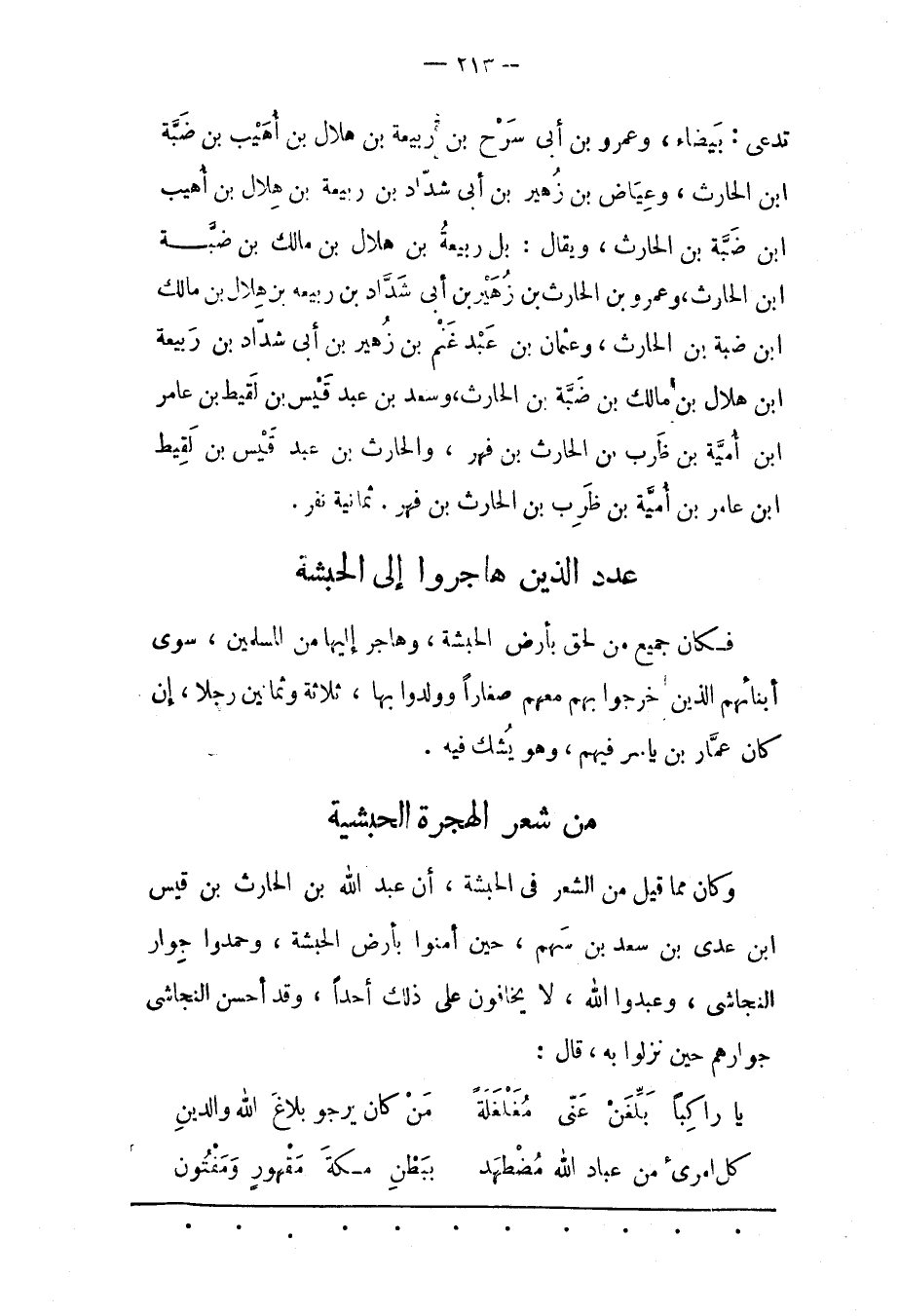 وَكَانَ مِمّا قِيلَ مِنْ الشّعْرِ فِي الْحَبَشَةِ، أَنّ عَبْدَ اللهِ بْنَ الْحَارِثِ بْنِ قَيْسِ ابن عَدِيّ بْنِ سَعْدِ بْنِ سَهْمٍ، حِين أَمِنُوا بِأَرْضِ الْحَبَشَةِ، وَحَمِدُوا جِوَارَ النّجَاشِيّ، وَعَبَدُوا اللهَ، لَا يَخَافُونَ عَلَى ذَلِكَ أَحَدًا، وَقَدْ أَحْسَنَ النجاشى جوارهم حين نزلوا به، قال: