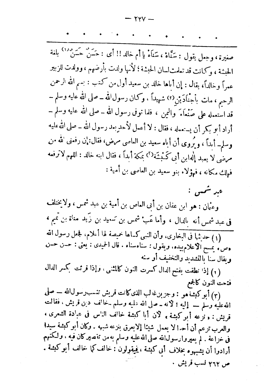 (3) أبو كبشة هو: وجز بن غالب الذى كانت قريش تنسب رَسُولُ اللهِ- صَلّى اللهُ عَلَيْهِ وَسَلّمَ- إلَيْهِ؛ لأنه- صلّى الله عليه وسلم- خالف دين قريش، فقالت قريش: «نزعه أبو كبشة» لأن أبا كبشة خالف الناس فى عبادة الشعرى، والعرب تزعم أن أحدا لا يعمل شيئا إلا بعرق ينزعه شبهه. وكان أبو كبشة سيدا فى خزاعة. لم يعيروا رَسُولُ اللهِ صَلّى اللهُ عَلَيْهِ وَسَلّمَ بِهِ من تقصير كان فيه، ولكنهم أرادوا أن يشبهوه بخلاف أبى كبشة، فيقولون: خالف كما خالف أبو كبشة. ص 262 نسب قريش.