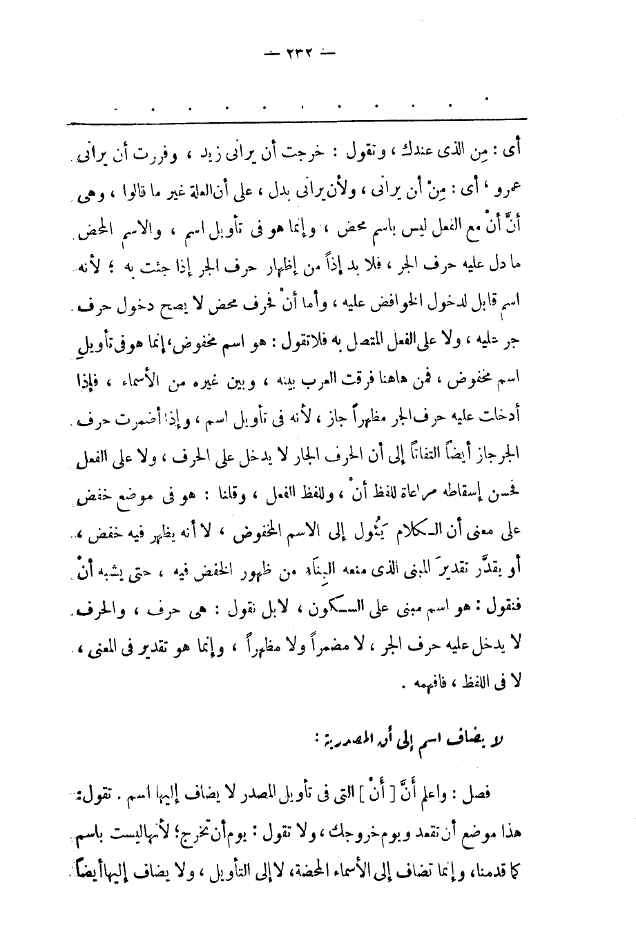فَصْلٌ: وَاعْلَمْ أَنّ [أَنْ] الّتِي فِي تَأْوِيلِ الْمَصْدَرِ لَا يُضَافُ إلَيْهَا اسْمٌ. تَقُولُ: