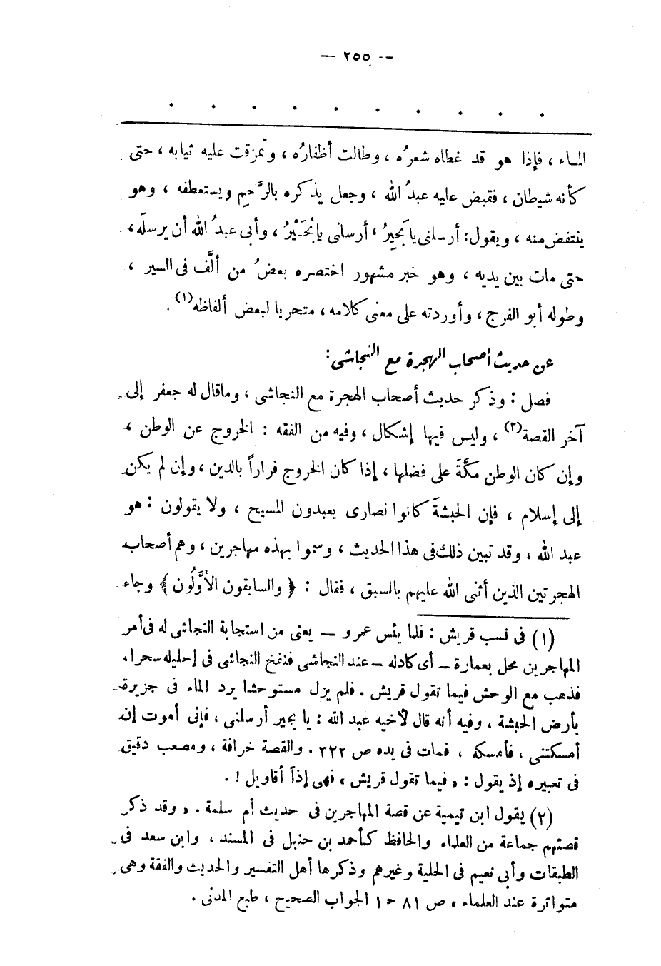 (2) يقول ابن تيمية عن قصة المهاجرين فى حديث أم سلمة. «وقد ذكر قصتهم جماعة من العلماء والحافظ كأحمد بن حنبل فى المسند، وابن سعد فى الطبقات وأبى نعيم فى الحلية وغيرهم وذكرها أهل التفسير والحديث والفقه وهى متواترة عند العلماء» ص 81 ح 1 الجواب الصحيح، طبع المدنى.