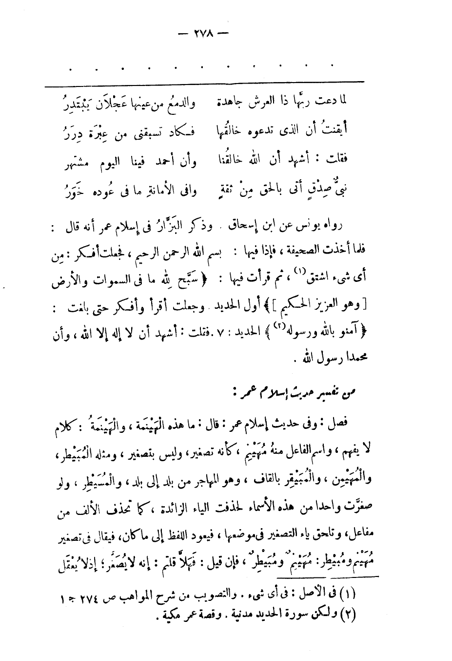 (2) ولكن سورة الحديد مدنية. وقصة عمر مكية.