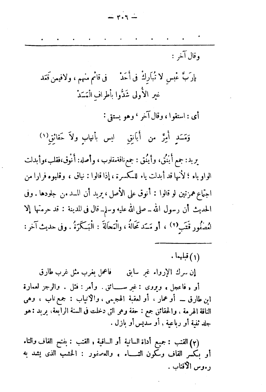 (2) القتب: جميع أداة السانية أو الساقية «القتب: بفتح القاف والتاء أو بكسر القاف وسكون التاء» والعصفور: الخشب الذى يشد به رؤس الأقتاب.