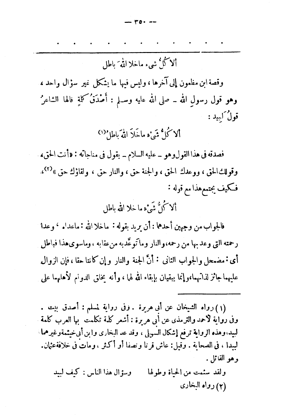 أَلَا كُلّ شَيْءٍ مَا خَلَا اللهَ بَاطِلُ «1»