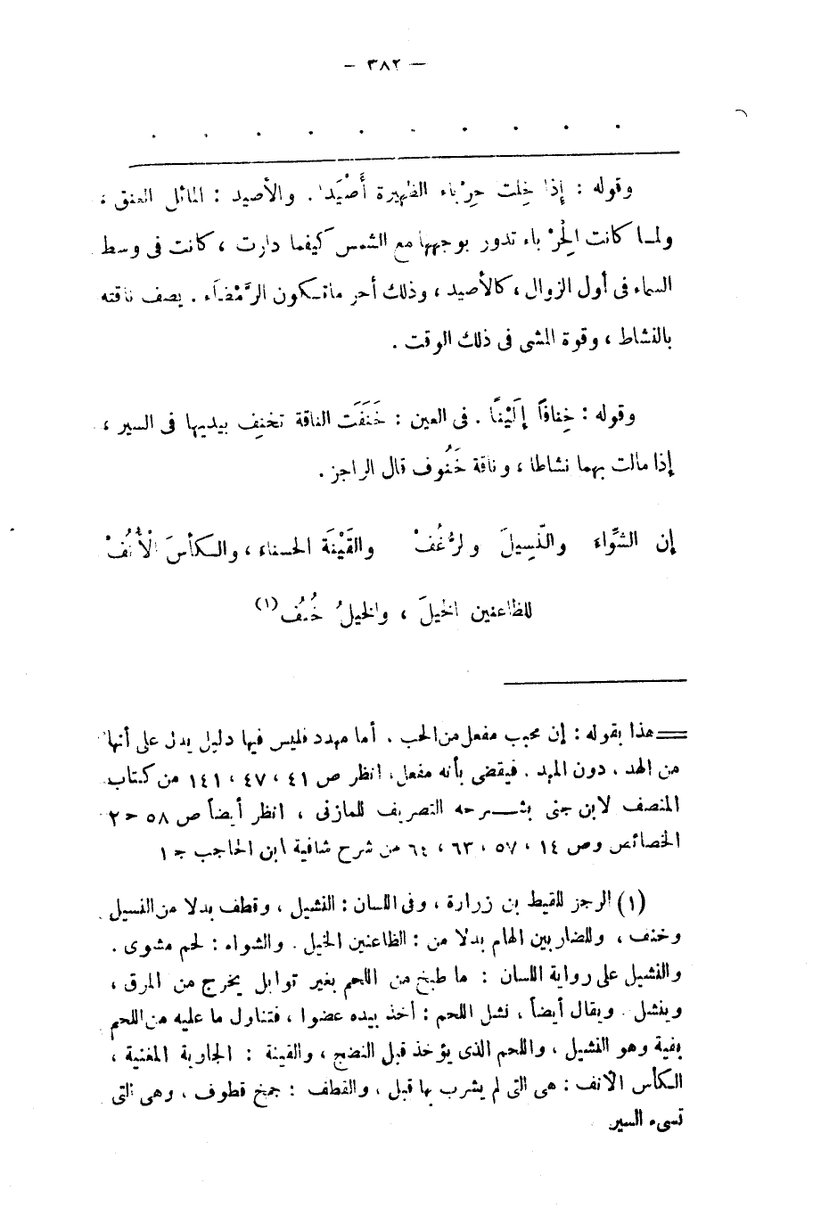 إنّ الشّوَاءَ وَالنّسِيلَ وَالرّغُفْ ... وَالْقَيْنَةَ الْحَسْنَاءَ، وَالْكَأْسَ الْأُنُفْ