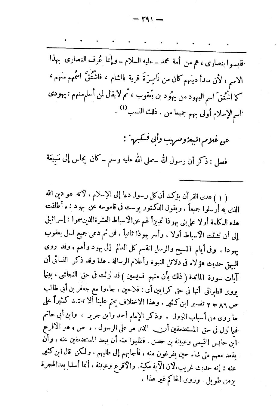 (1) هدى القرآن يؤكد أن كل رسول دعا إلى الإسلام، لأنه هو دين الله الذى به أرسلوا جميعا، ويقول الدكتور بوست فى قاموسه عن يهود: «أطلقت هذه الكلمة أولا على بنى يهوذا تمييزا لهم عن الأسباط العشرة الذين سموا: إسرائيل إلى أن تشتت الأسباط أولا، وأسر يهوذا ثانيا، فمن ثم دعى جميع نسل يعقوب يهودا، وفى أيام المسيح والرسل انقسم كل العالم إلى يهود وأمم» وقد روى البيهقى حديث هؤلاء فى دلائل النبوة وأعلام الرسالة. هذا وقد ذكر النسائى أن آيات سورة المائدة (ذلِكَ بِأَنَّ مِنْهُمْ قِسِّيسِينَ) قد نزلت فى حق النجاشى، بينما يروى الطبرانى أنها فى حق كرابين أى: فلاحين، جاؤا مع جعفر بن أبى طالب ص 86 ج 2 تفسير ابن كثير. وهذا الاختلاف يحتم علينا ألا نعتمد كثيرا على ما روى من أسباب النزول. وذكر الإمام أحمد وابن جرير، وابن أبى حاتم فيما نزل فى حق المستضعفين أن الذى مر على الرسول. «ص» هو الأقرع ابن حابس التميمى وعيينة بن حصن، فطلبوا منه أن يبعد المستضعفين عنه، وأن يقعد معهم متى شاء حين يفرغون منه، فأجابهم إلى طلبهم، ولكن قال ابن كثير عنه: إنه حديث غريب، لأن الاية مكية. والأقرع وعيينة، أنما أسلما بعد الهجرة يزمن طويل، وروى الحاكم غير هذا.