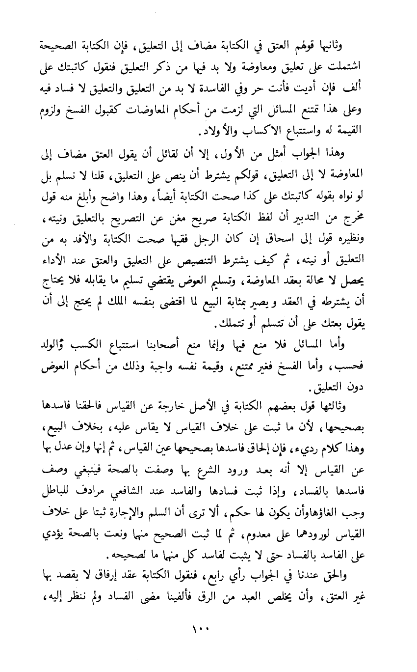والحق عندنا في الجواب رأي رابع فنقول الكتابة عقد إرفاق لا يقصد بها غير العتق وأن يخلص العبد من الرق فألفينا مضى الفساد ولم ننظر إليه