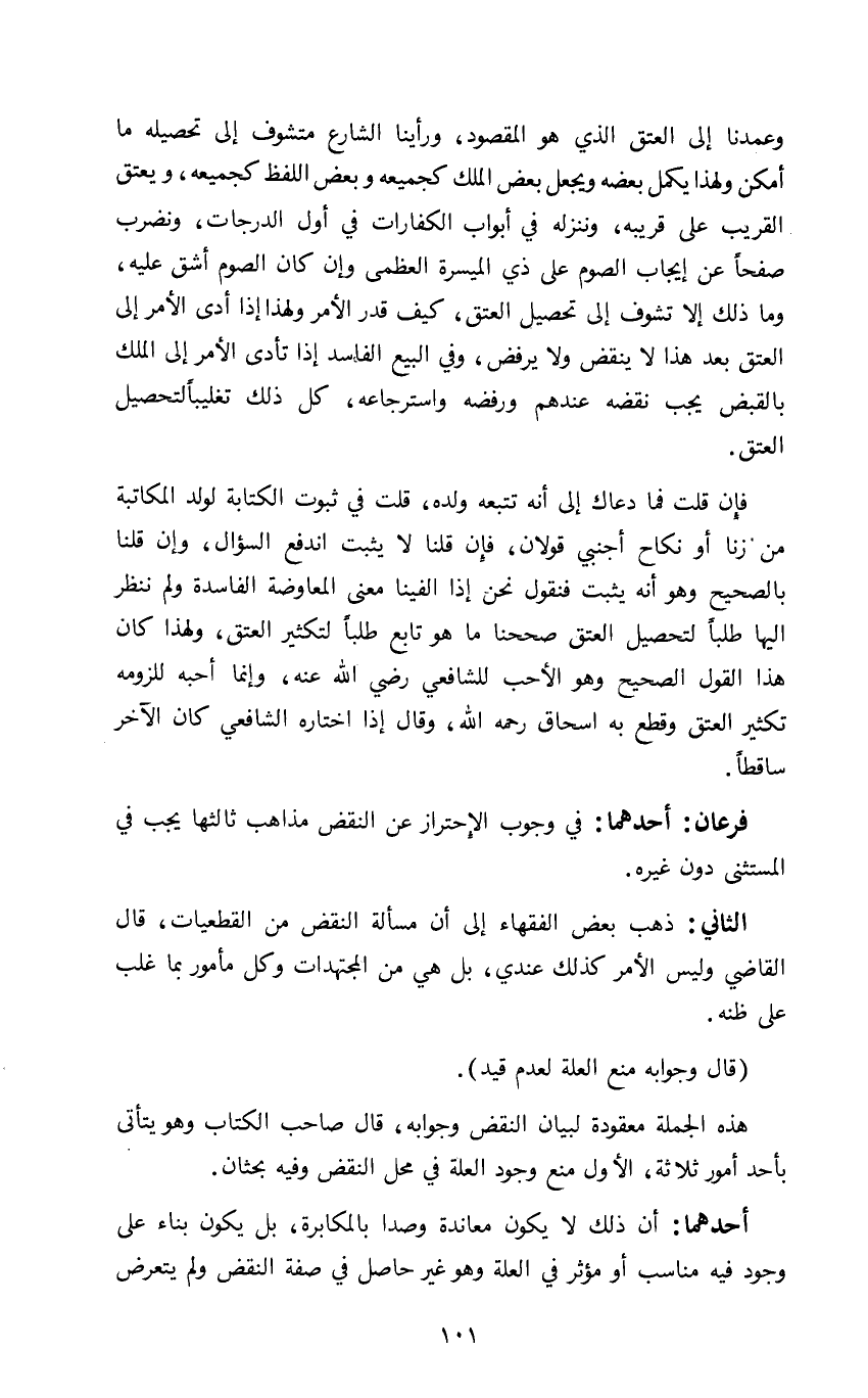 وعمدنا إلى العتق الذي هو المقصود ورأينا الشارع متشوف إلى تحصيله ما أمكن ولهذا يكمل بعضه بعضا ويجعل بعض الملك كجميعه وبعض اللفظ كجميعه ويعتق القريب على قريبه وننزله في أبواب الكفارات في أول الدرجات ونضرب صفحا عن إيجاب الصوم على ذي الميسرة العظمى وإن كان الصوم أشق عليه وما ذلك إلا تشوف إلى تحصيل العتق كيف قدر الأمر ولهذا إذا أدى الأمر إلى العتق بعد هذا لا ينقض ولا يرفض وفي البيع الفاسد إذا تأدى الأمر إلى الملك بالقبض يجب نقضه عندهم ورفضه واسترجاعه كل ذلك تغليبا لتحصيل العتق