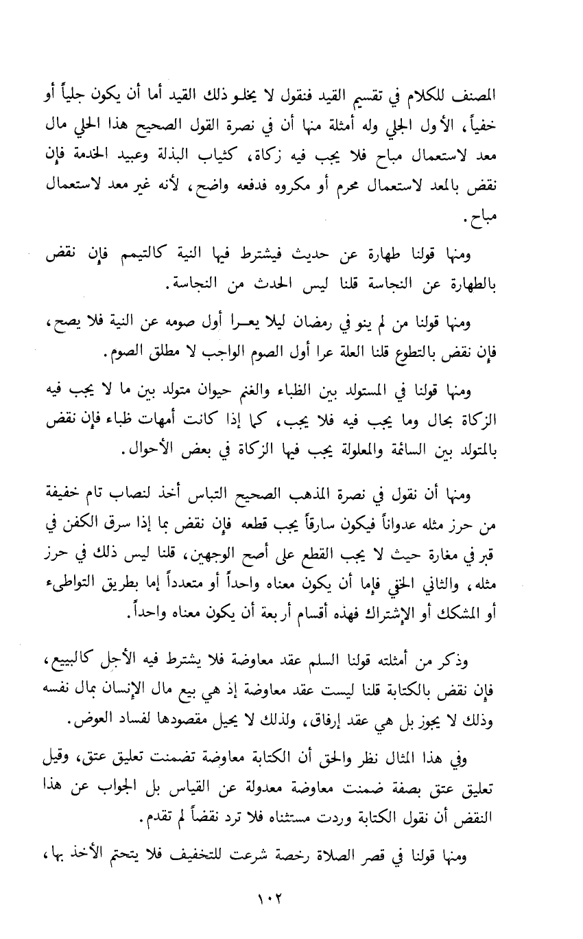 المصنف للكلام في تقسيم القيد فنقول لا يخلو ذلك القيد أما أن يكون جليا أو خفيا الأول الجلي وله أمثلة منها أن في نصرة القول الصحيح هذا الحلي مال معد لاستعمال مباح فلا يجب فيه زكاة كثياب البذلة وعبيد الخدمة فإن نقض بالمعد لاستعمال محرم أو مكروه فدفعه واضح لأنه غير معد لاستعمال مباح