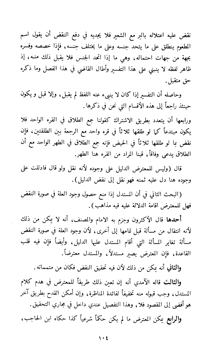 والثالث قاله الآمدي أنه إن تعين ذلك طريقا للمعترض في هدم كلام المستدل وجب قبوله منه تخفيفا لفائدة المناظرة وإن أمكن القدح بطريق آخر هو أفضى إلى المقصود فلا وهذا التفصيل عندي داخل في مجاري التحقيق