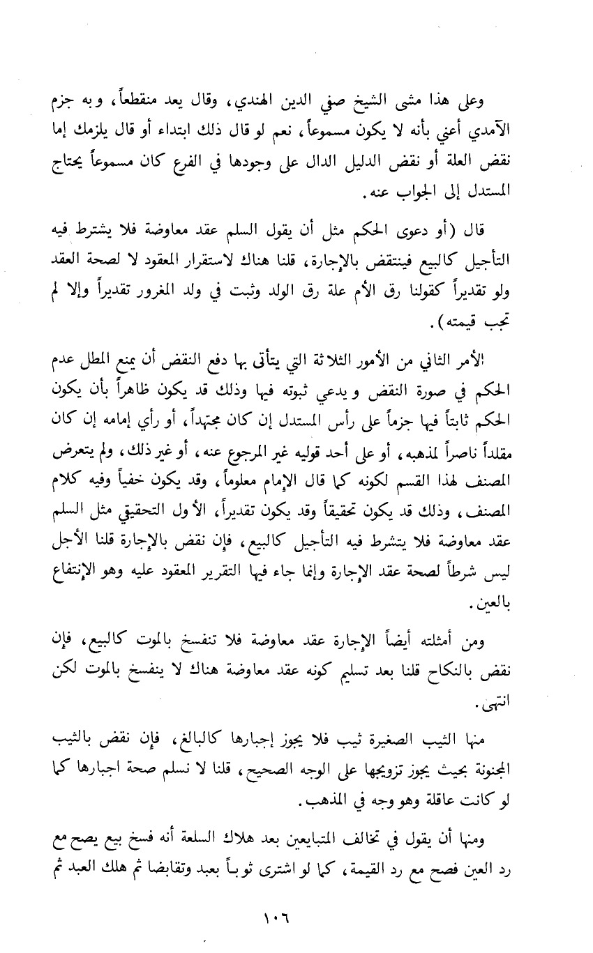 قال "أو دعوى الحكم مثل أن يقول السلم عقد معاوضة فلا يشترط فيه التأجيل كالبيع فينتقض بالإجارة قلنا هناك لاستقرار المعقود لا لصحة العقد ولو تقديرا كقولنا رق الأم علة رق الولد وثبت في ولد المغرور تقديرا وإلا لما تجب قيمته"