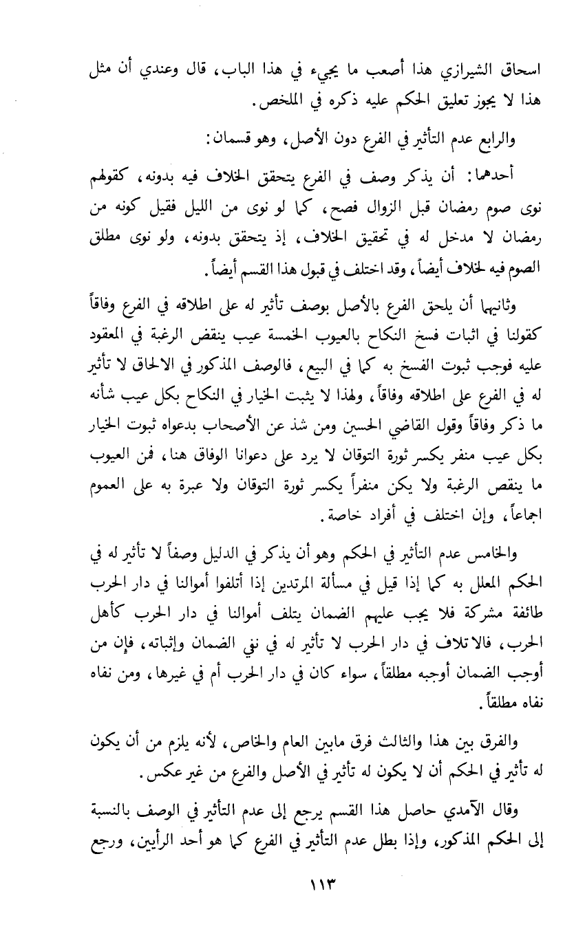 والرابع عدم التأثير في الفرع دون الأصل وهو قسمان