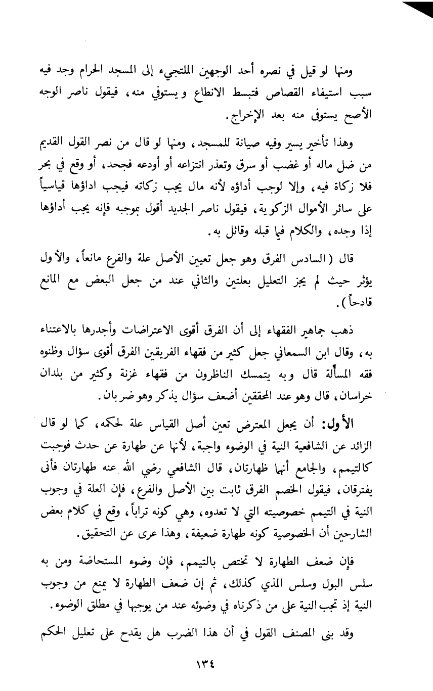الأول أن يجعل المعترض تعين أصل القياس علة لحكمه كما لو قال الزائد عن الشافعية النية في الوضوء واجبة لأنها عن طهارة عن حدث فوجبت كالتيمم والجامع أنهما طهارتان قال الشافعي رضي الله عنه طهارتان فأنى يفترقان فيقول الخصم الفرق ثابت بين الأصل والفرع فإن العلة في وجوب النية في التيمم خصوصيته التي لا تعدوه وهي كونه ترابا وقع في كلام بعض الشارحين أن الخصوصية كونه طهارة ضعيفة وهذا عرى عن التحقيق