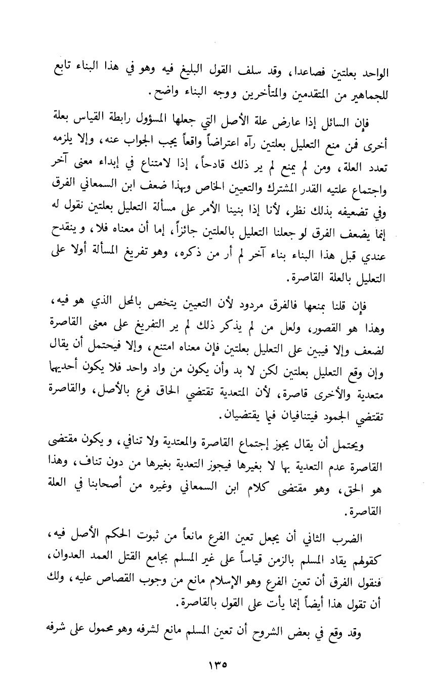 الواحد بعلتين فصاعدا وقد سلف القول البليغ فيه وهو في هذا البناء تابع للجماهير من المتقدمين والمتأخرين ووجه البناء واضح