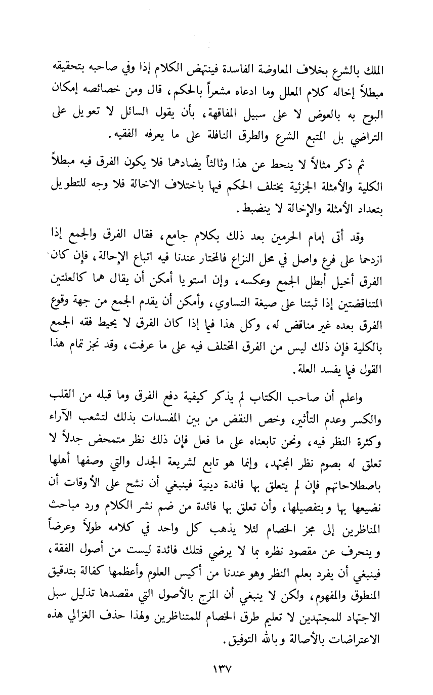 واعلم أن صاحب الكتاب لم يذكر كيفية دفع الفرق وما قبله من القلب والكسر وعدم التأثير وخص النقض من بين المفسدات بذلك لتشعب الآراء وكثرة النظر فيه ونحن تابعناه على ما فعل فإن ذلك نظر متمحض جدلا لا تعلق له بصوم نظر المجتهد وإنما هو تابع لشريعة الجدل والتي وصفها أهلها باصطلاحاتهم فإن لم يتعلق بها فائدة دينية فينبغي أن نشح على الأوقات أن نضيعها بها وبتفصيلها وأن تعلق بها فائدة من ضم نشر الكلام ورد مباحث المناظرين إلى مجز الخصام لئلا يذهب كل واحد في كلامه طولا وعرضا وينحرف عن مقصود نظره بما لا يرضي فتلك فائدة ليست من أصول الفقه فينبغي أن يفرد بعلم النظر وهو عندنا من أكيس العلوم وأعظمها كفالة بتدقيق المنطوق والمفهوم ولكن لا ينبغي أن المزج بالأصول التي مقصدها تذليل سبل الاجتهاد للمجتهدين لا تعليم طرق الخصام للمتناظرين ولهذا حذف الغزالي هذه الاعتراضات بالأصالة وبالله التوفيق