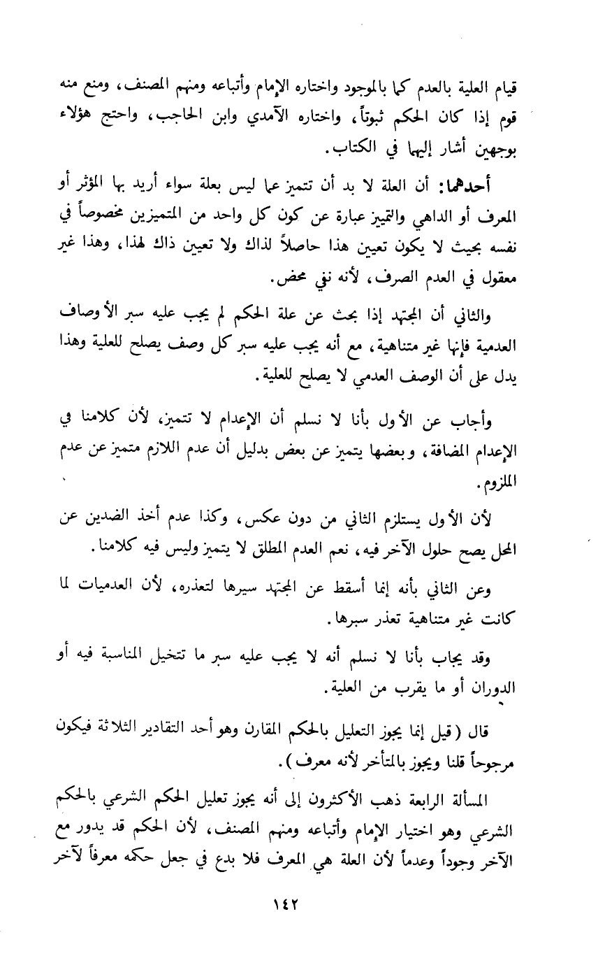 والثاني أن المجتهد إذا بحث عن علة الحكم لم يجب عليه سبر الأوصاف العدمية فإنها غير متناهية مع أنه يجب عليه سبر كل وصف يصلح للعلية وهذا يدل على أن الوصف العدمي لا يصلح للعلية