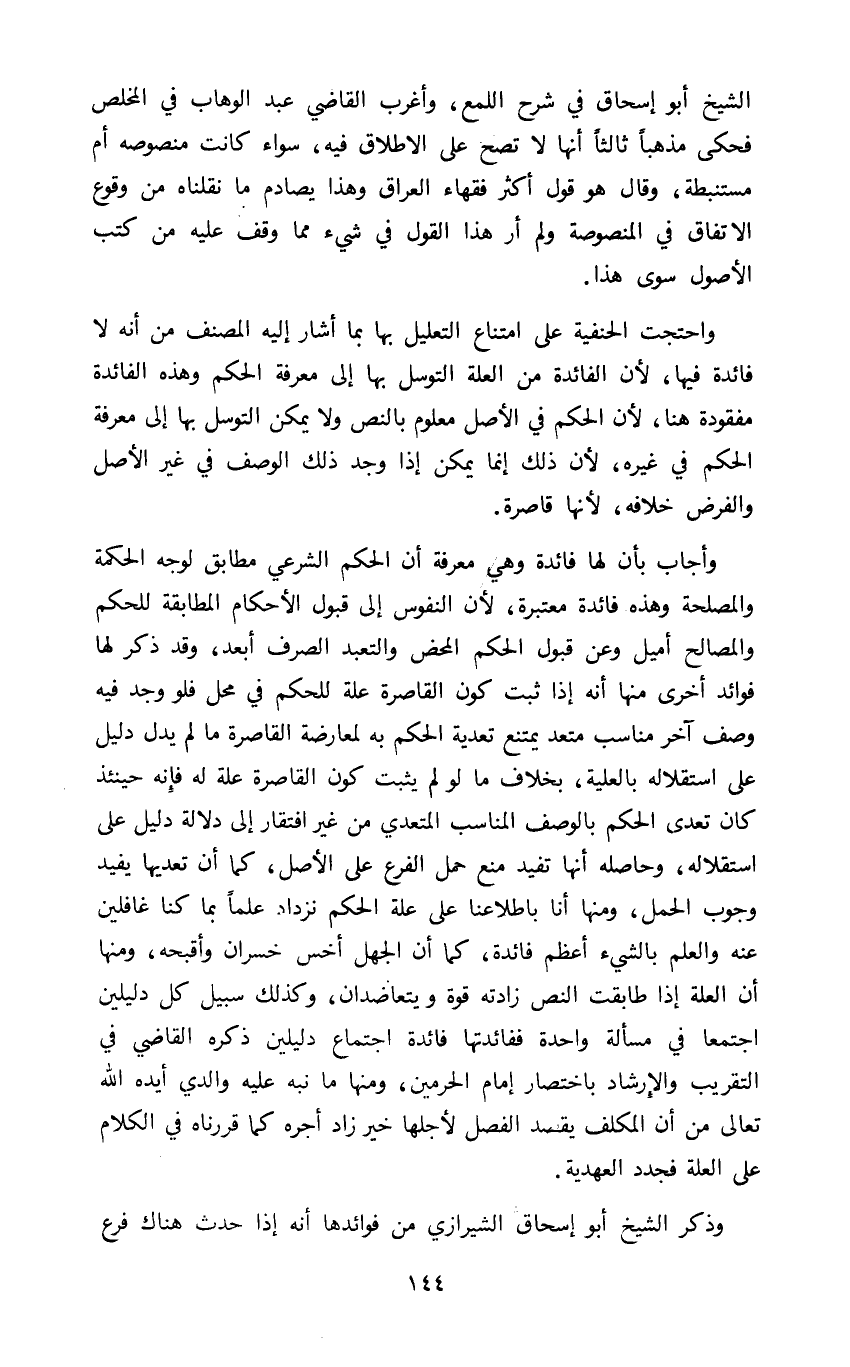 الشيخ أبو إسحاق في شرح اللمع وأغرب القاضي عبد الوهاب في المخلص فحكى مذهبا ثالثا أنها لا تصح على الإطلاق فيه سواء كانت منصوصه أم مستنبطة وقال هو قول أكثر فقهاء العراق وهذا يصادم ما نقلناه من وقوع الاتفاق في المنصوصة ولم أر هذا القول في شيء مما وقف عليه من كتب الأصول سوى هذا