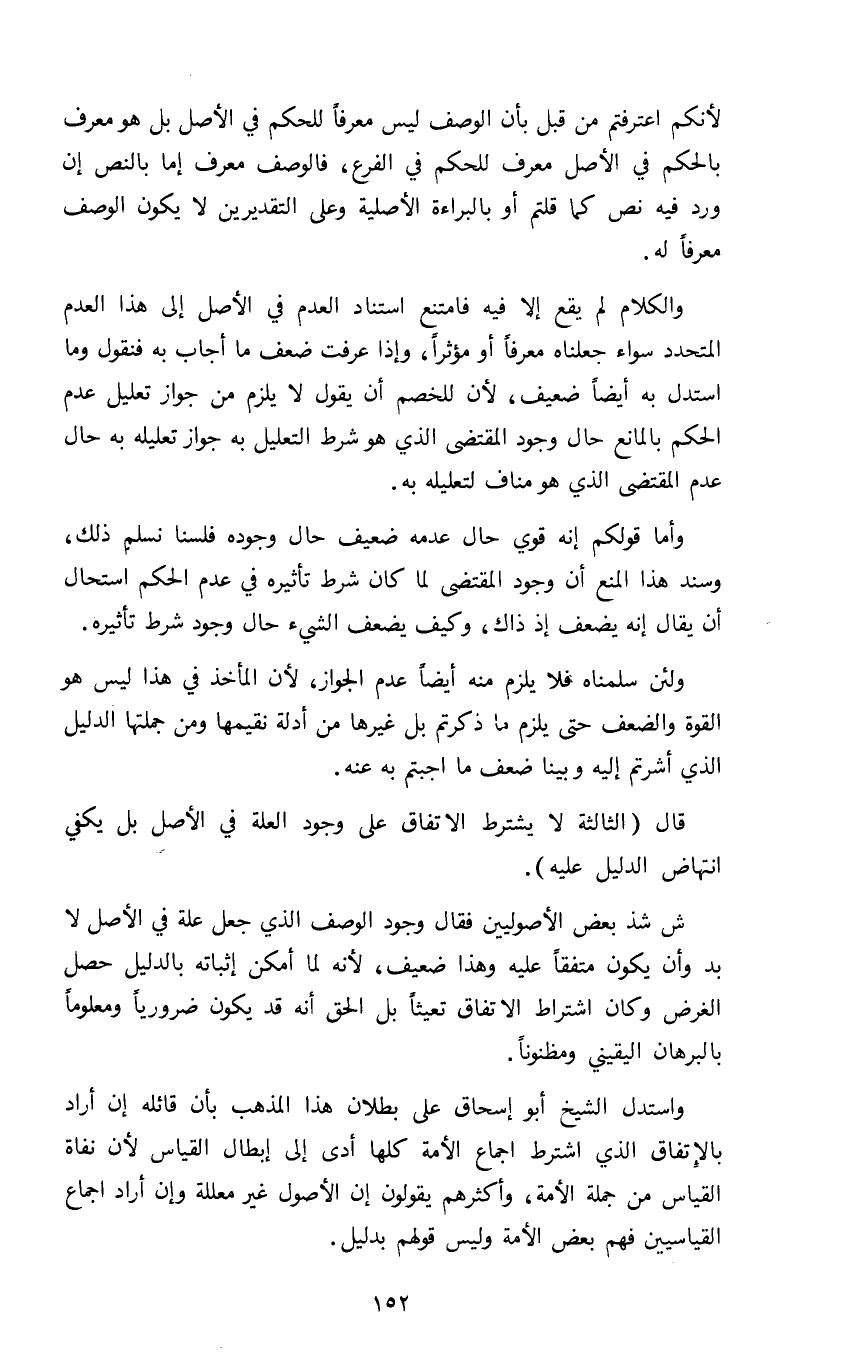 ش شذ بعض الأصوليين فقال وجود الوصف الذي جعل علة في الأصل لا بد وأن يكون متفقا عليه وهذا ضعيف لأنه لما أمكن إثباته بالدليل حصل الغرض وكان اشتراط الاتفاق تعيثا بل الحق أنه قد يكون ضروريا ومعلوما بالبرهان اليقيني ومظنونا
