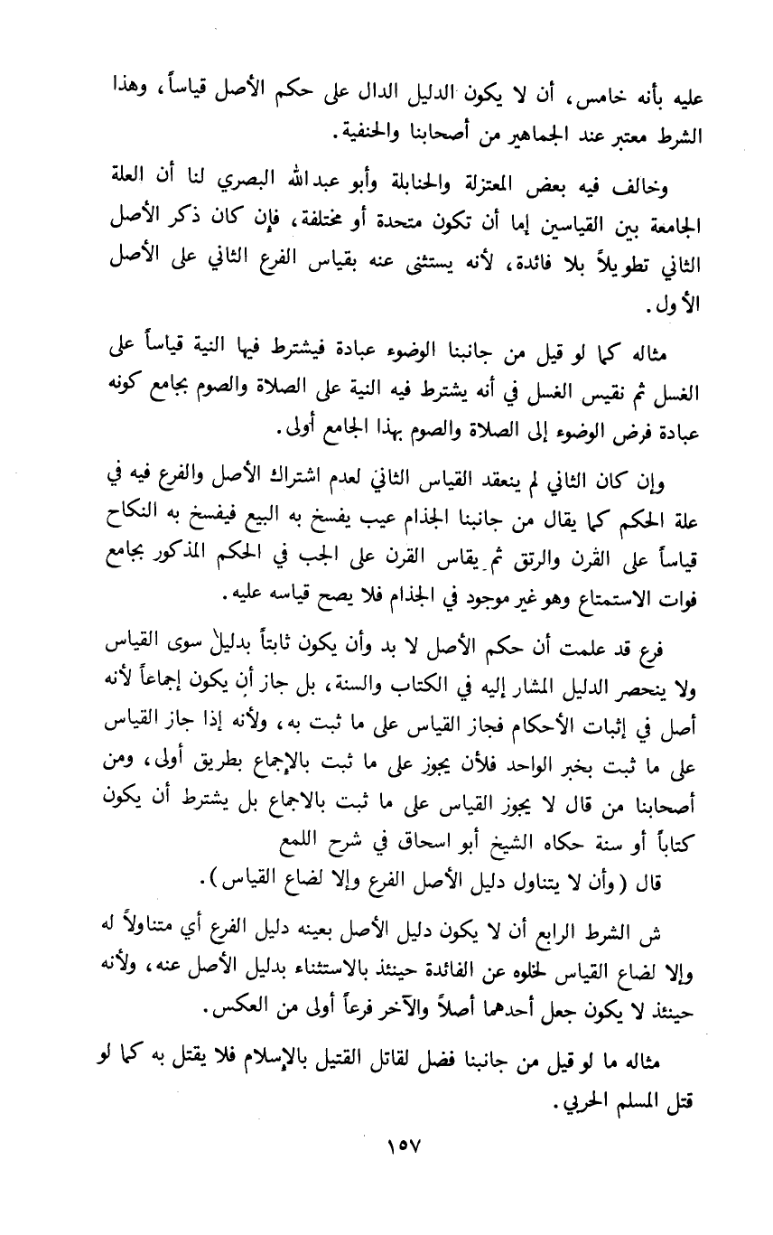 عليه بأنه خامس أن لا يكون الدليل الدال على حكم الأصل قياسا وهذا الشرط معتبر عند الجماهير من أصحابنا والحنفية