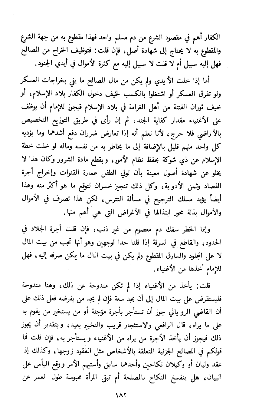 الكفار أهم في مقصود الشرع من دم مسلم واحد فهذا مقطوع به من جهة الشرع والمقطوع به لا يحتاج إلى شهادة أصل فإن قلت فتوظيف الخراج من المصالح فهل إليه سبيل أم لا قلت لا سبيل إليه مع كثرة الأموال في أيدي الجنود