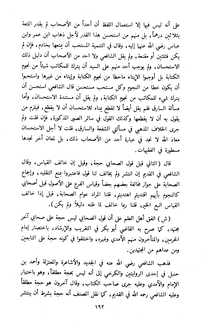 على أنه ليس فيها إلا استعمال اللفظ أن أحدا من الأصحاب لم يقدر المتعة بثلاثين درهما بل منهم من استحسن هذا القدر لأجل ذهاب ابن عمر وابن عباس رضي الله عنهما إليه وقال في التنمية المستحب أن يمتعها بخادم فإن لم يكن فثلثين أو مقنعة ولم يقل الشافعي ولا أحد من الأصحاب أن دليل ذلك الاستحسان ولم يوجب أحد منهم على السيد أن يترك للمكاتب شيئا من نجوم الكتابة بل أوجبوا الإيتاء ماحطا من نجوم الكتابة وإيتاء من غيرها واستحبوا أن يكون خطا من النجوم وكل مستحب مستحسن قال الشافعي استحسن أن يترك شيء للمكاتب من نجوم الكتابة ولم يقل أن مستنده الاستحسان وأما مسألة السارق فلم يقل أيضا لا تقطع يمناه للاستحسان أن لا يقطع فيلزم من يقول به أن لا يقطعها وكذلك القول في سائر الصور المذكورة فإن قلت ولم جرى الخلاف المذهبي في مسألتي الشفعة والسارق قلت لا أجل الاستحسان معاذ الله لا نجد في عبارة أحد من الأصحاب ذلك بل لمعان أخر نجدها مسطورة في الفقهيات