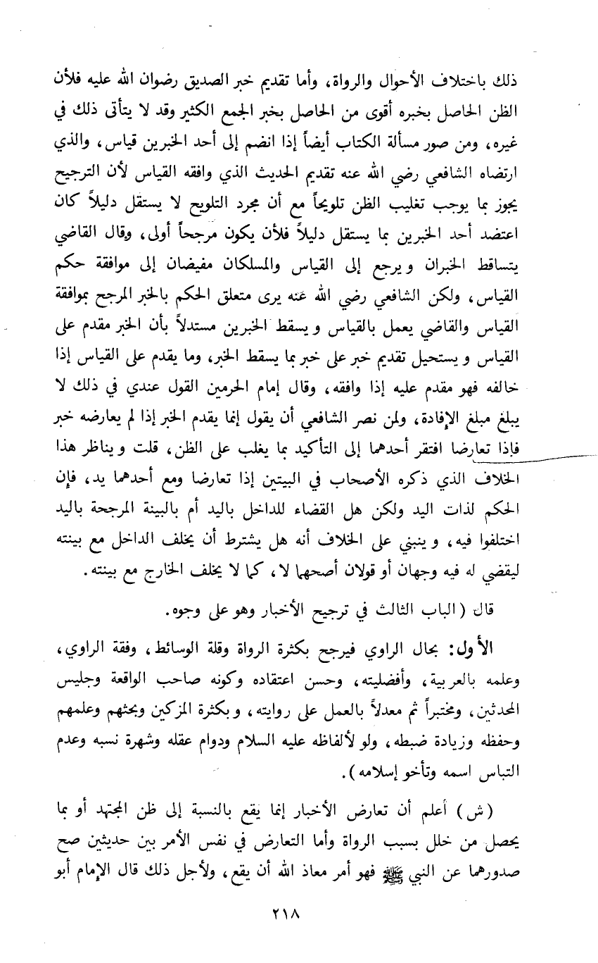 قال "الباب الثالث في ترجيح الأخبار وهو على وجوه