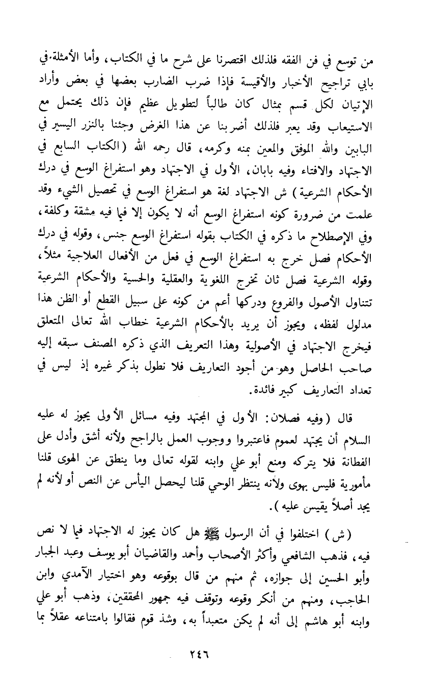 قال "وفيه فصلان الأول في المجتهد وفيه مسائل الأولى يجوز له عليه السلام أن يجتهد