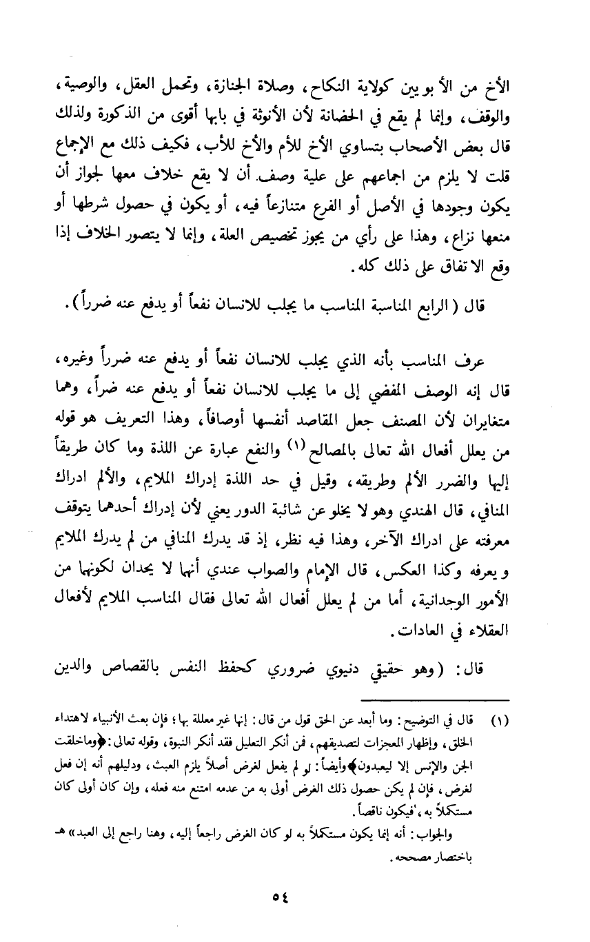 قال "الرابع المناسبة المناسب ما يجلب للإنسان نفعا أو يدفع عنه ضررا"