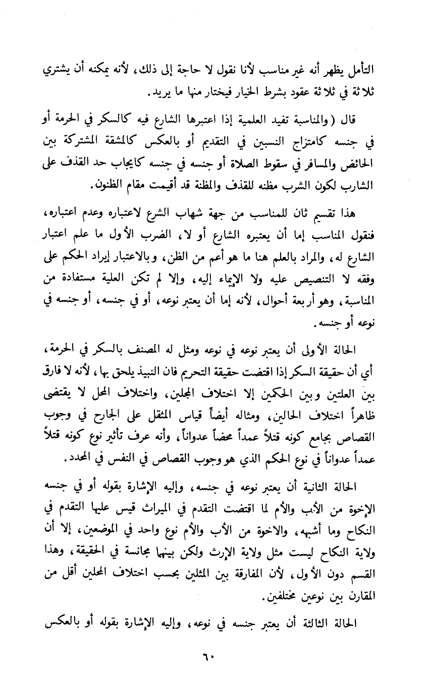 قال "والمناسبة تفيد العلمية إذا اعتبرها الشارع فيه كالسكر في الحرمة أو في جنسه كامتزاج النسبين في التقديم أو بالعكس كالمشقة المشتركة بين الحائض والمسافر في سقوط الصلاة أو جنسه في جنسه كإيجاب حد القذف على الشارب لكون الشرب مظنة للقذف والمظنة قد أقيمت مقام الظنون