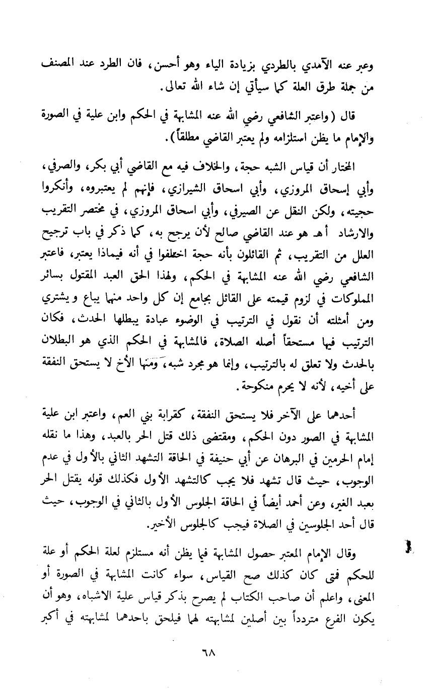 قال "واعتبر الشافعي رضي الله عنه المشابهة في الحكم وابن علية في الصورة والإمام ما يظن استلزامه ولم يعتبر القاضي مطلقا"