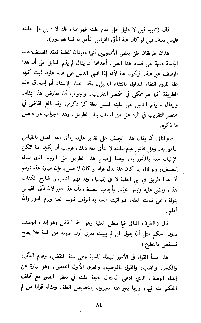 قال الطرف الثاني فيما يبطل العلية وهو ستة: