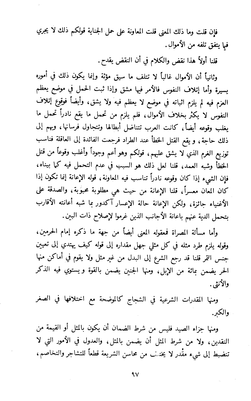 وثانيا أن الأموال غالبا لا تتلف ما سيق مؤثة وإنما يكون ذلك في أموره يسيرة وأما إتلاف النفوس فالأمر فيها مشق وإذا ثبت الحمل في موضع يعظم العزم فيه لم يلزم إثباته في موضع لا يعظم فيه ولا يشق وأيضا فوقوع إتلاف النفوس لا يكثر بخلاف الأموال فلم يلزم من تحمل ما يقع نادرا تحمل ما يغلب وقوعه أيضا كانت العرب تتناضل أبطالها وتتجاول فرسانها وبهم إلى ذلك حاجة ويقع القتل الخطأ عند الطراد فرجعت الفائدة إلى العاقلة فناسب توزيع الغرم الذي لا يشق عليهم قولكم وهو أعم وجودا وأغلب وقوعا من قتل الخطأ وشبه العمد قلنا لعل ذلك هو السبب في عدم التحمل فيه كما بيناه فإن الشيء إذا كان وقوعه نادرا تناسب فيه المعاونة قوله الإعانة إنما تكون إذا كان المعان معسرا قلنا الإعانة من حيث هي مطلوبة محبوبة والصدقة على الأغنياء جائزة ولكن الإعانة حالة الإعسار آكدور بما شبه أعانته الأقارب بتحمل الدية عنهم بإعانة الأجانب الذين غرموا لإصلاح ذات البين