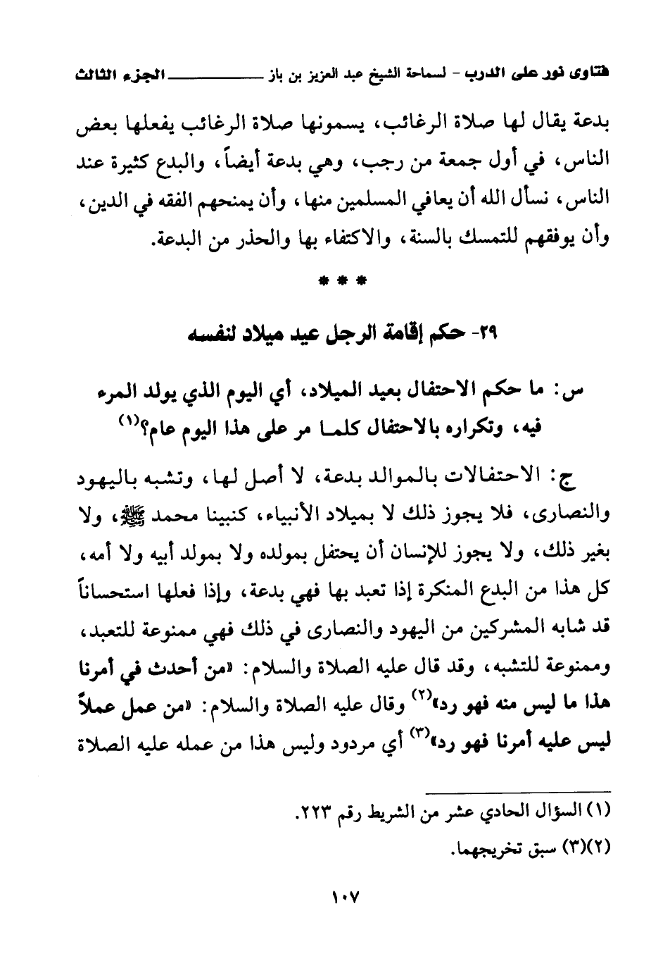 كتاب فتاوى نور على الدرب لابن باز بعناية الشويعر (اسم الجزء: 3)