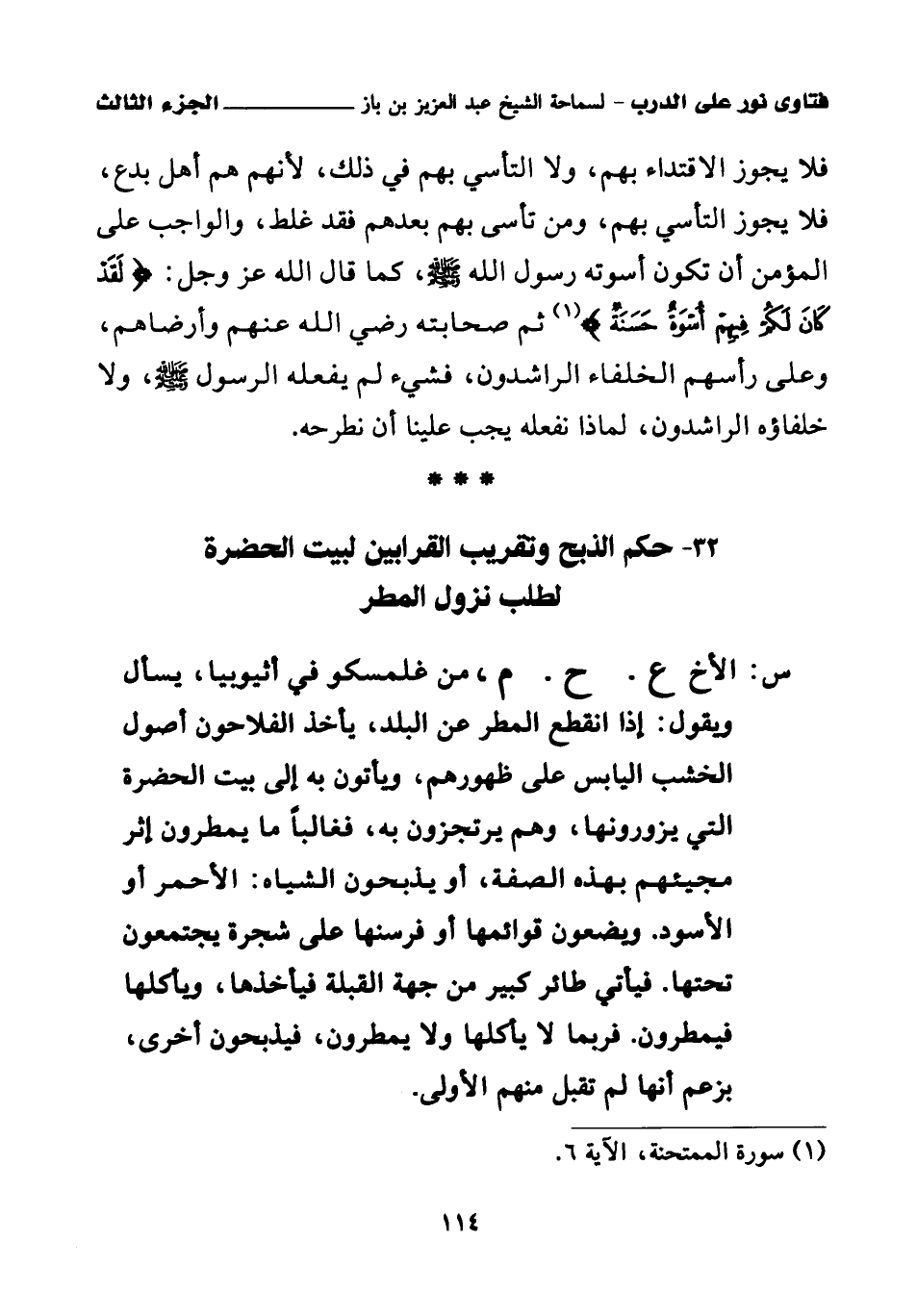 32 - حكم الذبح وتقريب القرابين لبيت الحضرة لطلب نزول المطر