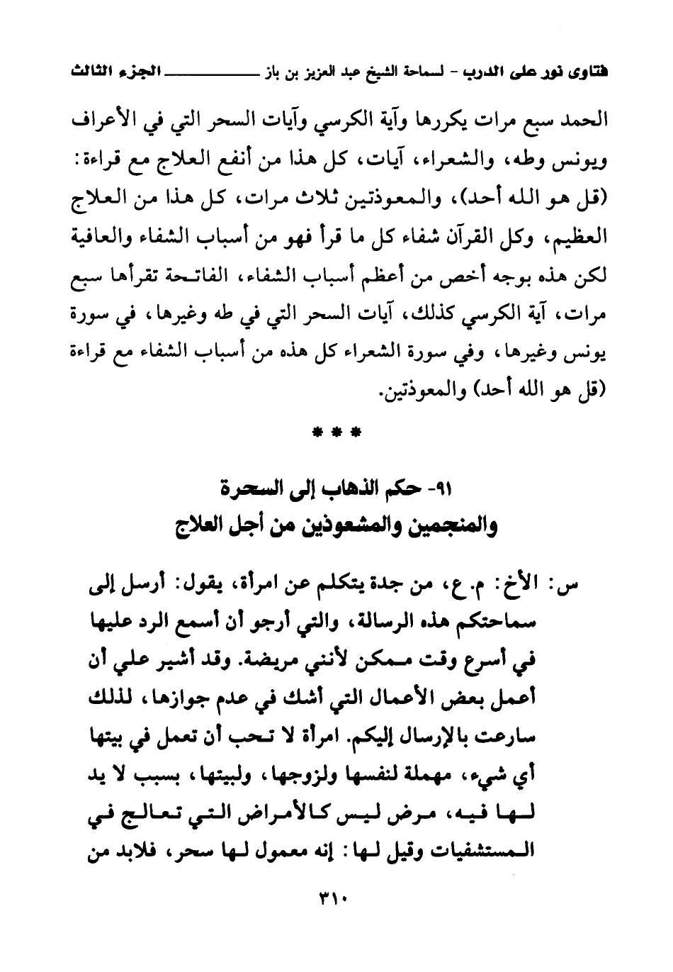 91 - حكم الذهاب إلى السحرة والمنجمين والمشعوذين من أجل العلاج