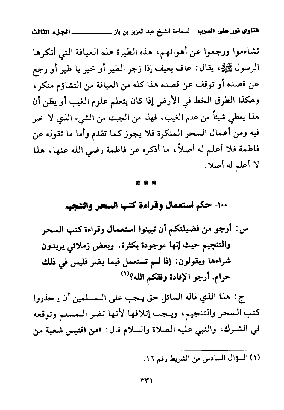 100 - حكم استعمال وقراءة كتب السحر والتنجيم