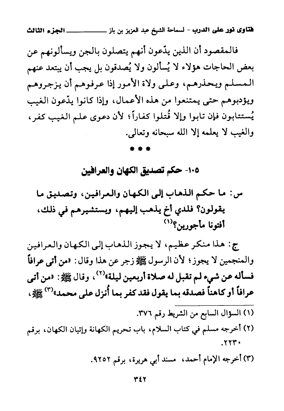 كتاب فتاوى نور على الدرب لابن باز بعناية الشويعر (اسم الجزء: 3)