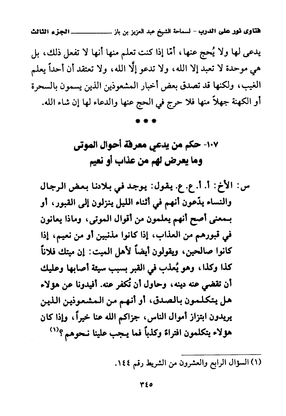 107 - حكم من يدعي معرفة أحوال الموتى وما يعرض لهم من عذاب أو نعيم