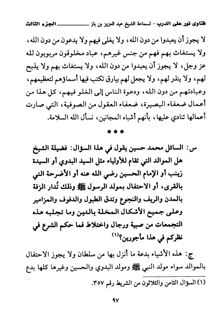 كتاب فتاوى نور على الدرب لابن باز بعناية الشويعر (اسم الجزء: 3)
