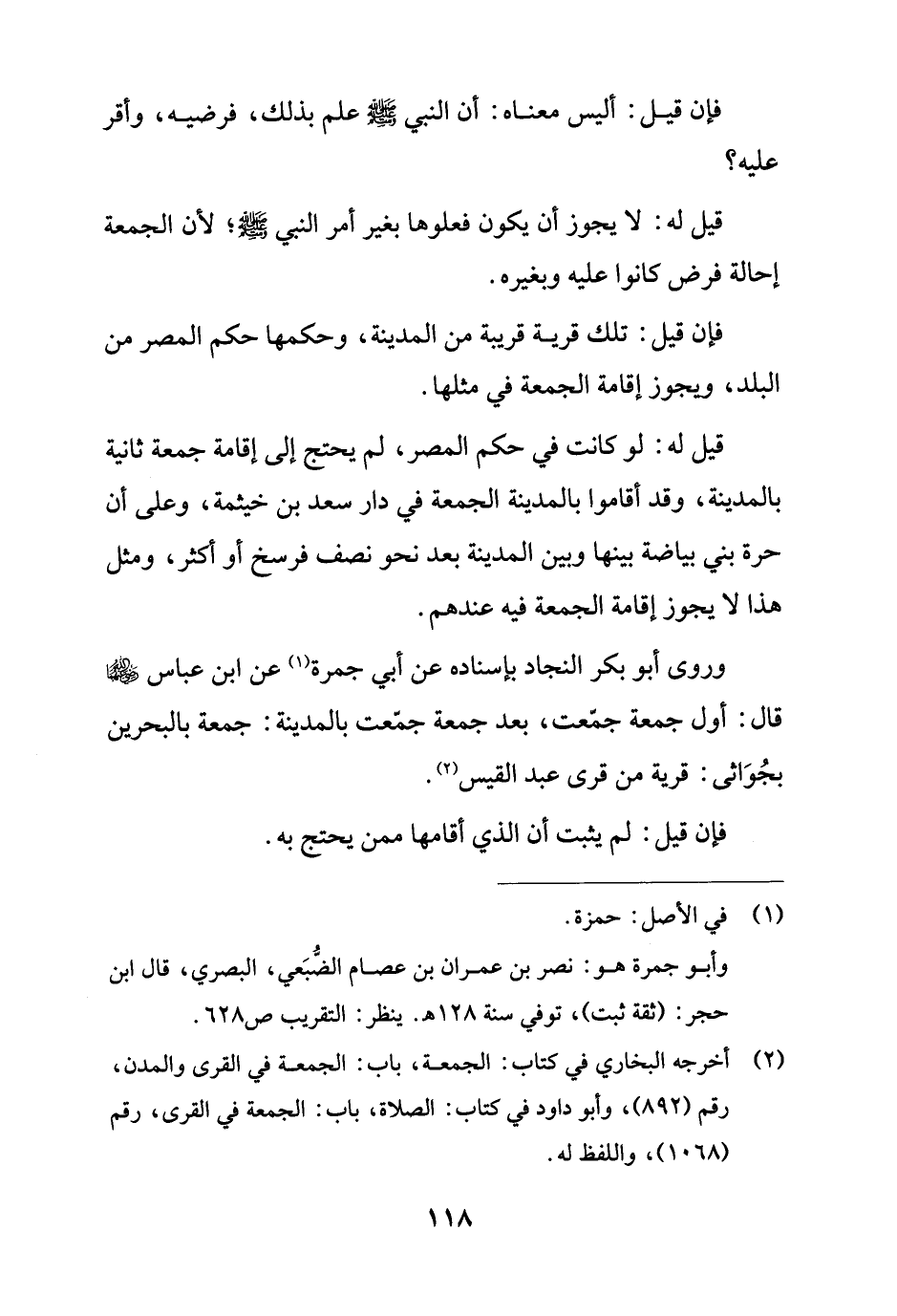(¬2) أخرجه البخاري في كتاب: الجمعة، باب: الجمعة في القرى والمدن، رقم (892)، وأبو داود في كتاب: الصلاة، باب: الجمعة في القرى، رقم (1068)، واللفظ له.