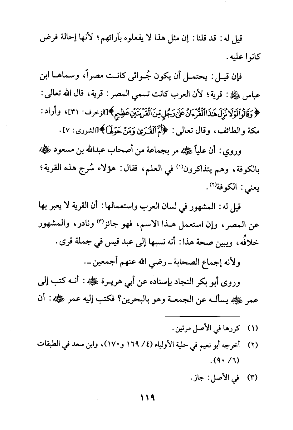 قيل له: المشهور في لسان العرب واستعمالها: أن القرية لا يعبر بها عن المصر، وان استعمل هذا الاسم، فهو جائز (¬3) ونادر، والمشهور خلافُه، ويبين صحة هذا: أنه نسبها إلى عبد قيس في جملة قرى.