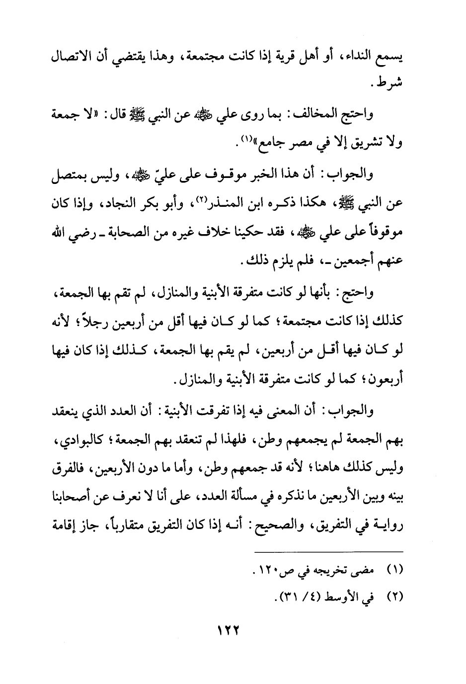 والجواب: أن المعنى فيه إذا تفرقت الأبنية: أن العدد الذي ينعقد بهم الجمعة لم يجمعهم وطن، فلهذا لم تنعقد بهم الجمعة؛ كالبوادي، وليس كذلك ها هنا؛ لأنه قد جمعهم وطن، وأما ما دون الأربعين، فالفرق بينه وبين الأربعين ما نذكره في مسألة العدد، على أنا لا نعرف عن أصحابنا رواية في التفريق، والصحيح: أنه إذا كان التفريق متقاربًا، جاز إقامة