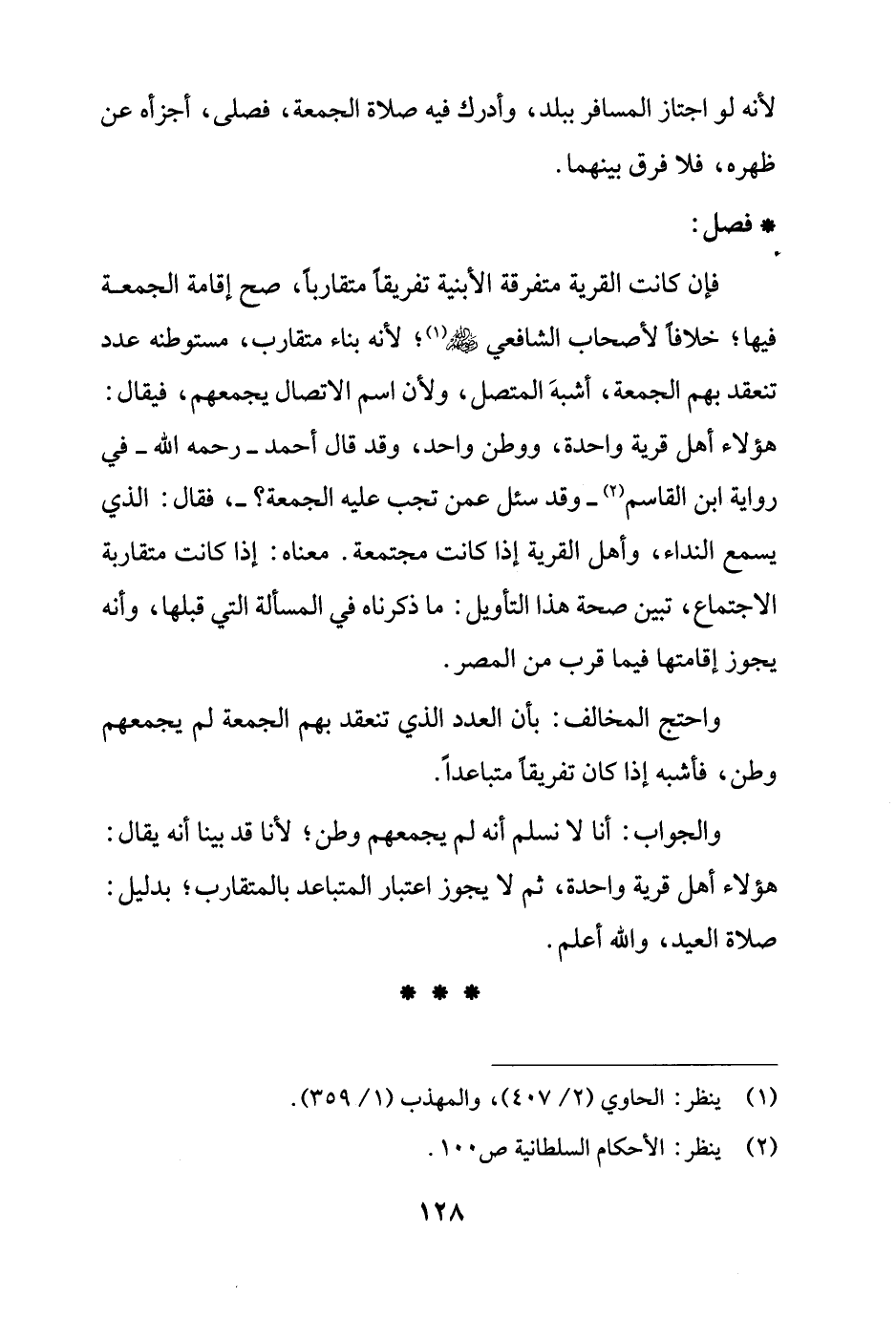 والجواب: أنا لا نسلم أنه لم يجمعهم وطن؛ لأنا قد بينا أنه يقال: هؤلاء أهل قرية واحدة، ثم لا يجوز اعتبار المتباعد بالمتقارب؛ بدليل: صلاة العيد، والله أعلم.