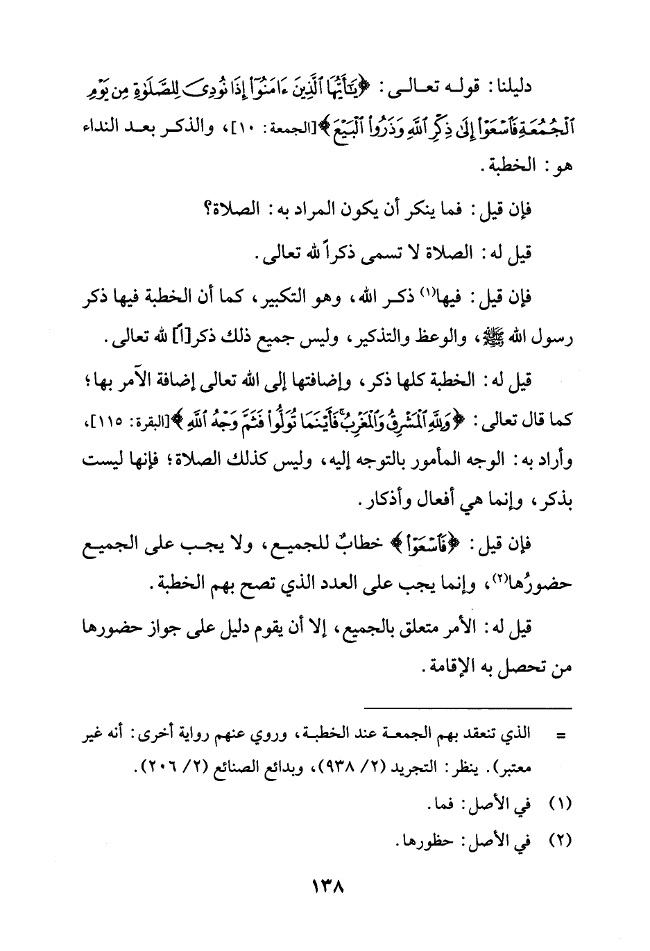 فإن قيل: {فَاسْعَوْا} خطابٌ للجميع، ولا يجب على الجميع حضورُها (¬2)، وإنما يجب على العدد الذي تصح بهم الخطبة.